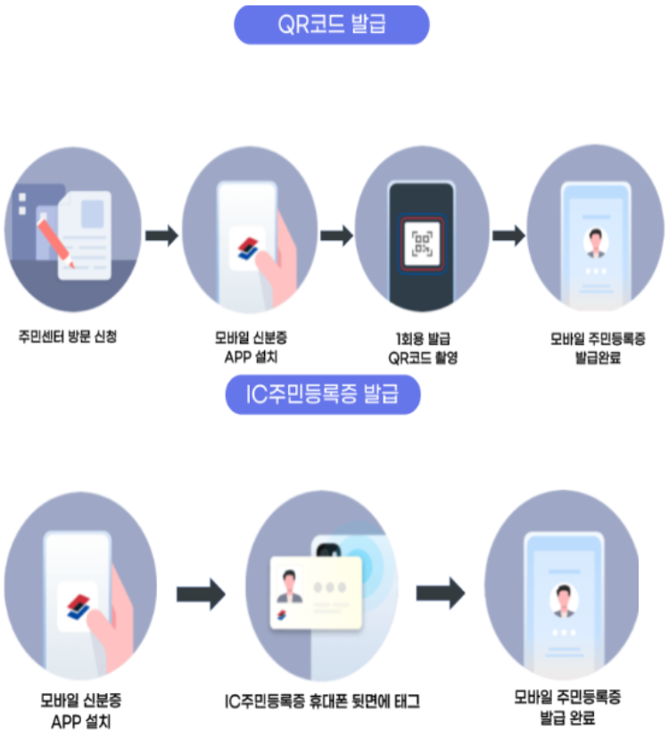 - IC칩 내장된 주민등록증 새로 발급하여 실물 주민등록증을 휴대전화와 접촉해 발급